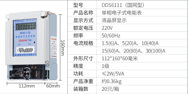 DDS6111型單相電子式電能表,由于采用集成電路和SMT制造工藝,使之測量準確度,穩定性等均得到了可靠保證.適用計量額定頻率為50Hz,額定電壓為220V的單相交流有功電能.