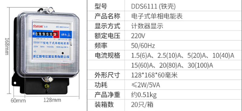DDS6111型單相電子式電能表,由于采用集成電路和SMT制造工藝,使之測(cè)量準(zhǔn)確度,穩(wěn)定性等均得到了可靠保證.適用計(jì)量額定頻率為50Hz,額定電壓為220V的單相交流有功電能.